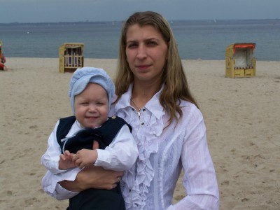 Nach der Taufe mit Mama am Strand vor unserem Haus